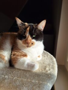 Ik hou van mijn rust, maar vergis je niet: ’s avonds kan ik plots helemaal opleven en jaag ik mijn speelmuisje door de kamer alsof ik weer een jonge poes ben. 🐭 Knuffelen doe ik ook graag, maar wel op mijn manier. Vooral ’s morgens en ’s avonds kom ik zelf vragen om aandacht, en dan lig ik al snel klaar met mijn buikje omhoog voor een gezellig knuffelmoment. Overdag ben ik graag in je buurt, zonder dat ik constant aandacht nodig heb, en alleen thuis zijn vind ik helemaal geen probleem.