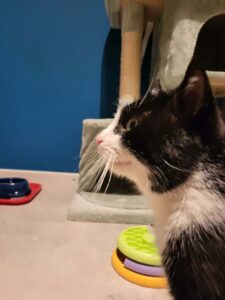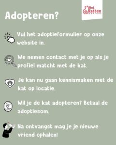 Ik ben een actieve en nieuwsgierige jongen die graag speelt, ontdekt en op avontuur gaat. 🗺️ Binnen zitten alleen past niet zo goed bij mij, want ik voel duidelijk dat de buitenwereld roept. 🌿 Een thuis waar ik veilig naar buiten kan, is dan ook echt belangrijk voor mij. Spelen doe ik het liefst met knisperende speeltjes die lekker lawaai maken, daar kan ik me helemaal in verliezen! Ook kauwen op speciale kattenstokjes vind ik zalig, en mijn nageltjes hou ik netjes bij met krabkarton.