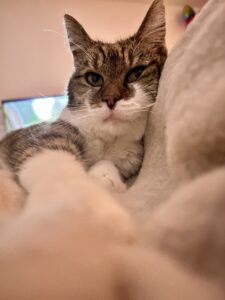 Ik ben een rustige dame die goed alleen kan zijn overdag en die nooit schrikt van plotse dingen. Nieuwe situaties onderzoek đ ik op mijn gemak, maar meestal blijf ik gewoon kalm en vriendelijk. Als je me ziet, is de kans groot dat ik al naar je kijk met een zachte blik en stilletjes begin te spinnen. Wil je me echt blij maken? Dan heb ik ÊÊn magisch woord: vloeibare snacks. Daar ben ik helemaal gek op! đŦđ âs Avonds kruip ik graag gezellig bij je, niet per se op schoot maar wel lekker dicht in je buurt, zodat ik je warmte kan voelen. Ik ben zindelijk, lief, sociaal en een fantastische gezelschapskat voor wie een rustige en aanhankelijke oudere dame zoekt.