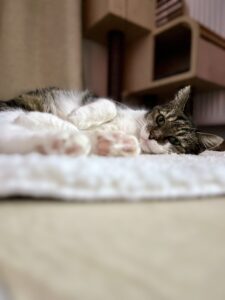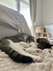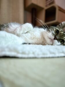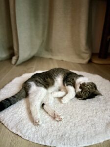 Ik heb wel een medische aandoening: ik heb een schildklierprobleem, waarvoor ik twee keer per dag siroop đ krijg. Met de siroop is deze al helemaal onder controle. Gelukkig gaat dat allemaal heel vlot en blijf ik dankzij die zorg gewoon mezelf: zacht, vrolijk en knorrend tevreden. Ben jij op zoek naar een rustige, lieve dame die je elke dag verwelkomt met spinnen en zachte kopjes? Dan wacht ik hier geduldig op jou. đ